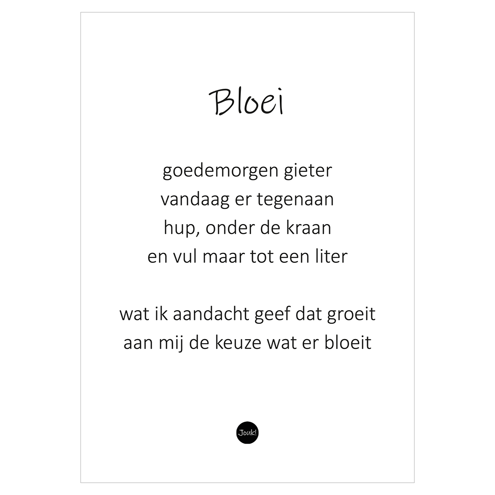 Deze kaart in A6-formaat wordt geleverd met envelop. Door het rustige design in zwart en wit, gaat alle aandacht naar de woorden van hoop, liefde en bemoediging.Onderdeel van de kaartenserie Knipoogje!