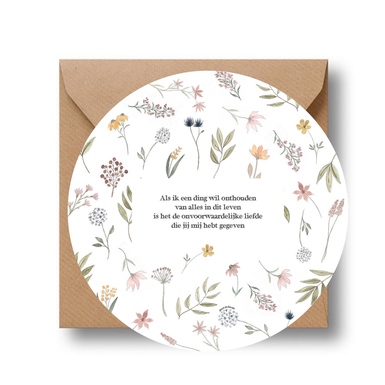 Rond cadeaubordje uit de serie ‘Cirkelcadeau’ van karton. Mooi om te sturen rond moederdag, of wanneer dat je aan je moeder wilt laten weten wat ze voor je betekent. Ook mogelijk om op te hangen met dubbelzijdig tape of tesa strip (niet meegeleverd).