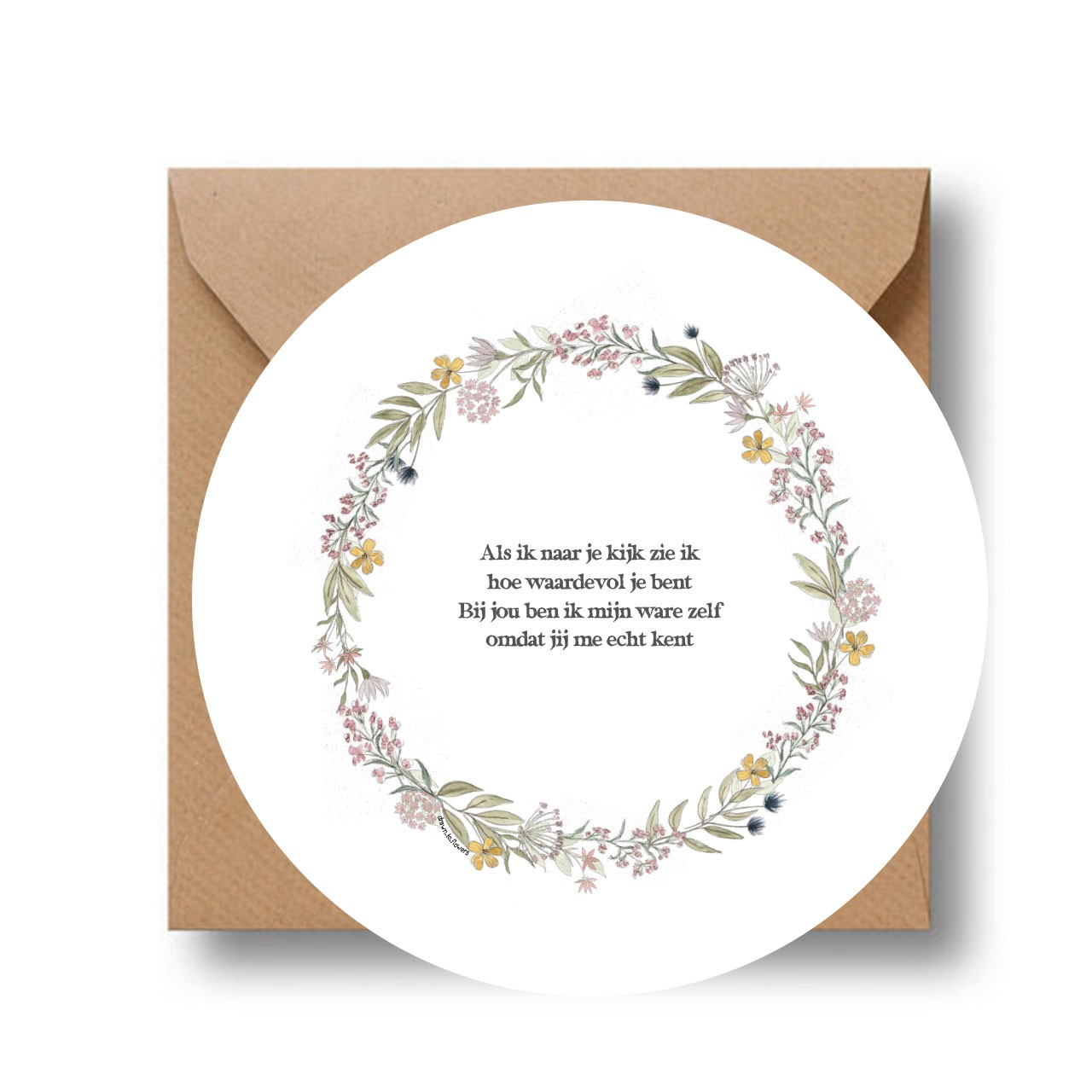 Rond cadeaubordje uit de serie ‘Cirkelcadeau’ van karton. Mooi om te sturen rond moederdag, of wanneer dat je aan je moeder wilt laten weten wat ze voor je betekent. Ook mogelijk om op te hangen met dubbelzijdig tape of tesa strip (niet meegeleverd).