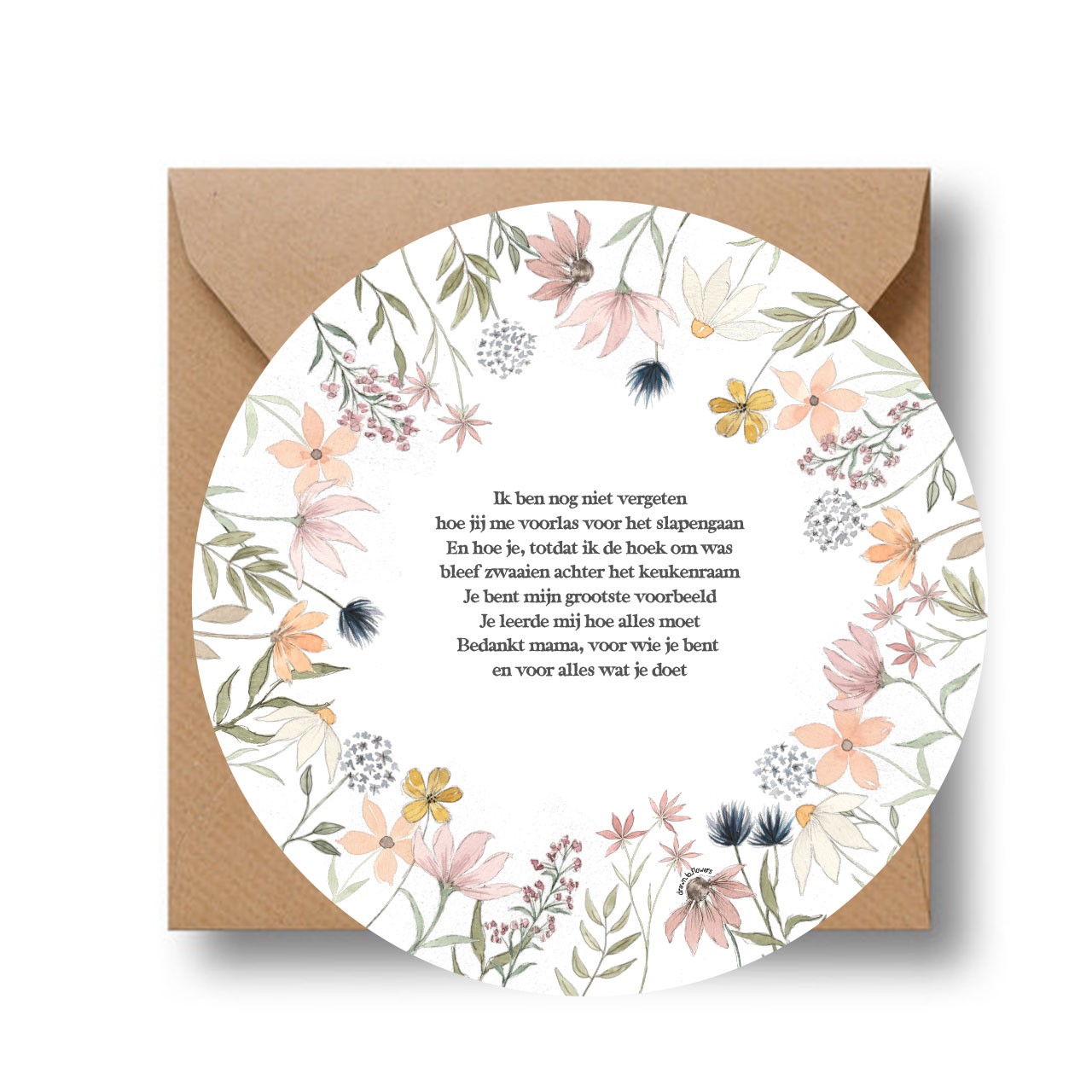 Rond cadeaubordje uit de serie ‘Cirkelcadeau’ van karton. Mooi om te sturen rond moederdag, of wanneer dat je aan je moeder wilt laten weten wat ze voor je betekent. Ook mogelijk om op te hangen met dubbelzijdig tape of tesa strip (niet meegeleverd).
