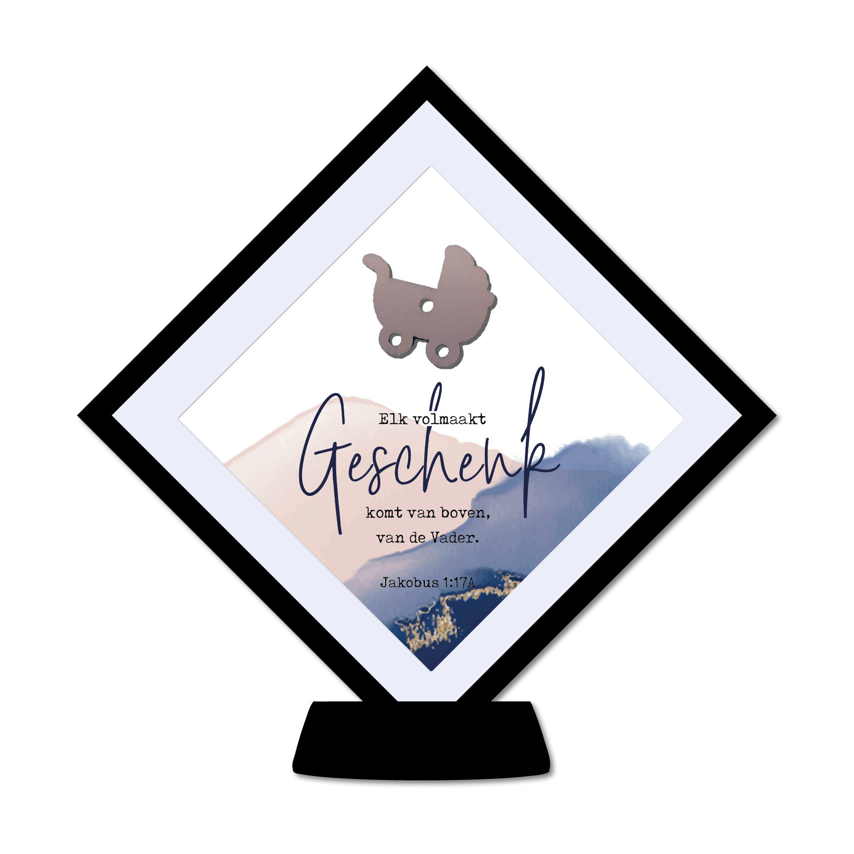 Dit display ‘Elk volmaakt geschenk’ met leuke baby accesoire is een leuk kraamcadeautje.