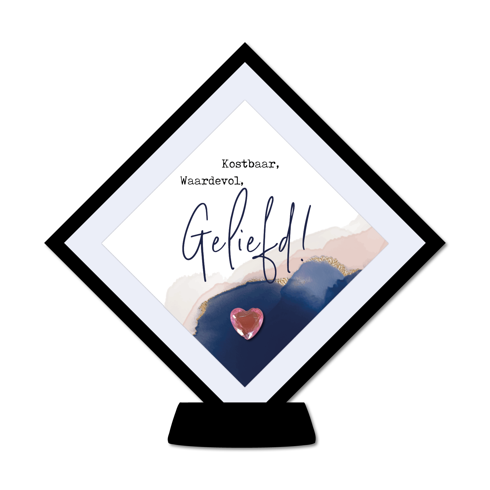 Met dit display ‘Kostbaar, waardevol, geliefd’ en een hartjes accesoire laat je iemand op een originele manier weten hoe bijzonder hij is. Het display is eenvoudig te openen, zodat je eventueel zelf een tekst op het kaartje kunt schrijven.