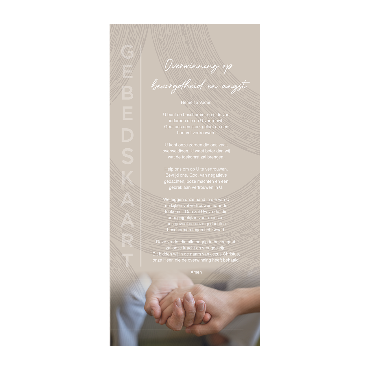 Deze sfeervolle gebedskaart is perfect voor momenten van onzekerheid en zorgen over de toekomst. Ideaal om samen met iemand te bidden of als betekenisvol geschenk om hoop en troost te bieden.