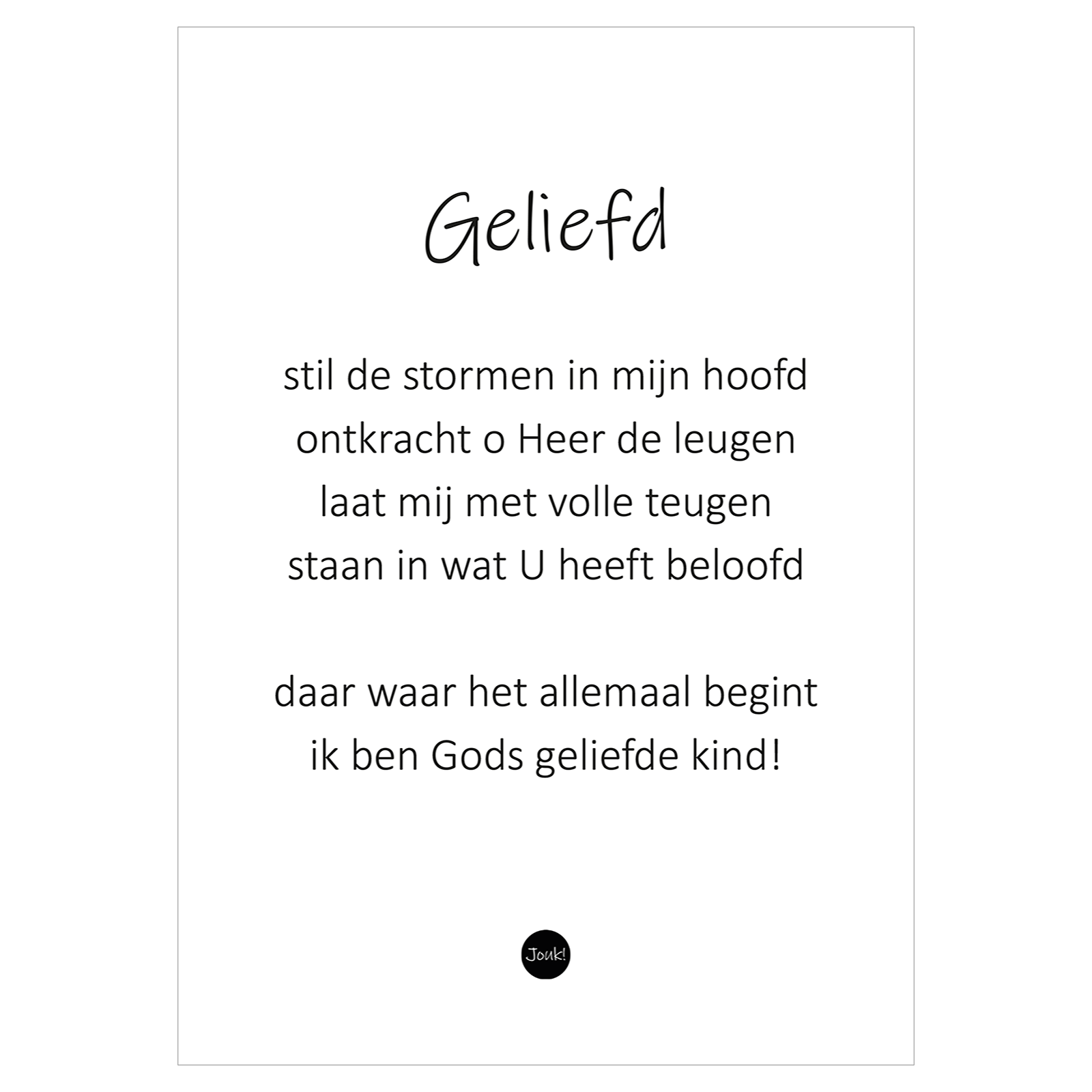 Deze kaart in A6-formaat wordt geleverd met envelop. Door het rustige design in zwart en wit, gaat alle aandacht naar de woorden van hoop, liefde en bemoediging.Onderdeel van de kaartenserie Knipoogje!