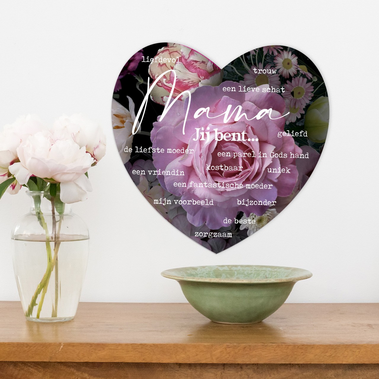 Prachtig cadeau voor Moederdag; een hart met de tekst: ‘Mama, jij bent…’.