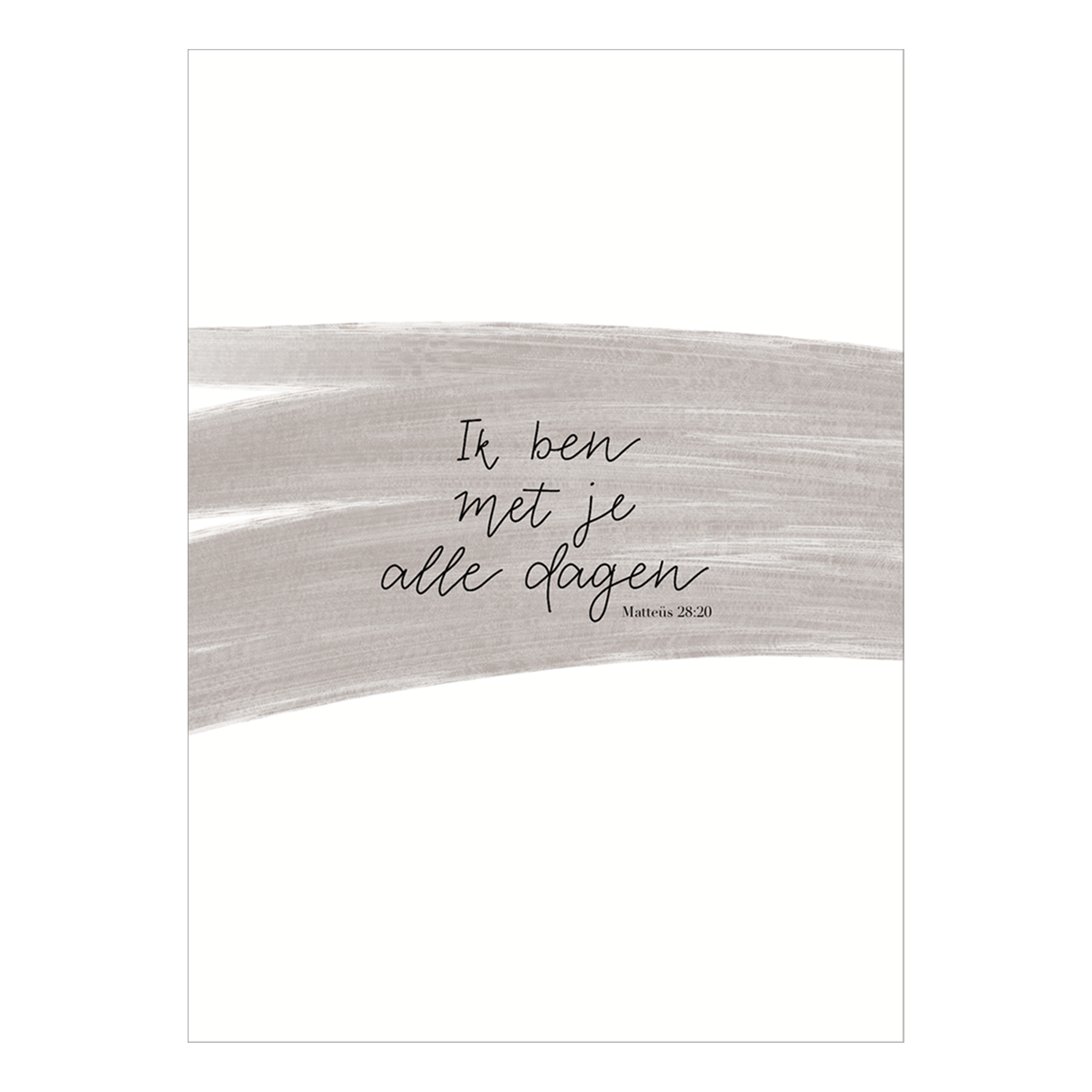 Een enkele kaart op dik papier met de tekst ‘Ik ben met je alle dagen’.