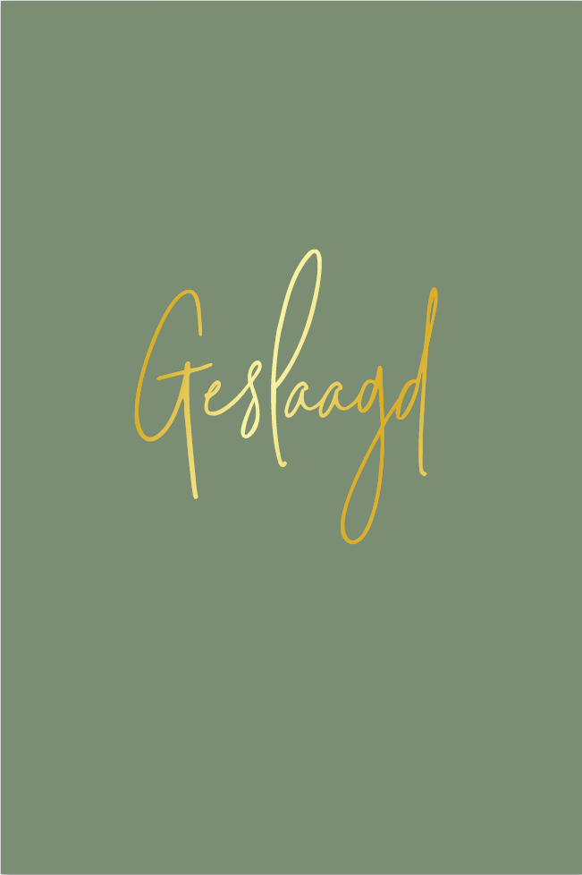 Luxe kaart uit de serie ‘Schrijven is Goud’, bedrukt met prachtig goudfolie. Tekst: ‘Geslaagd’