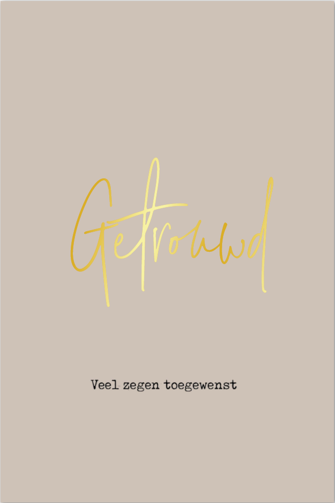 Luxe huwelijkskaart uit de serie ‘Schrijven is Goud’, bedrukt met prachtig goudfolie. Tekst: ‘Getrouwd. Veel zegen toegewenst’