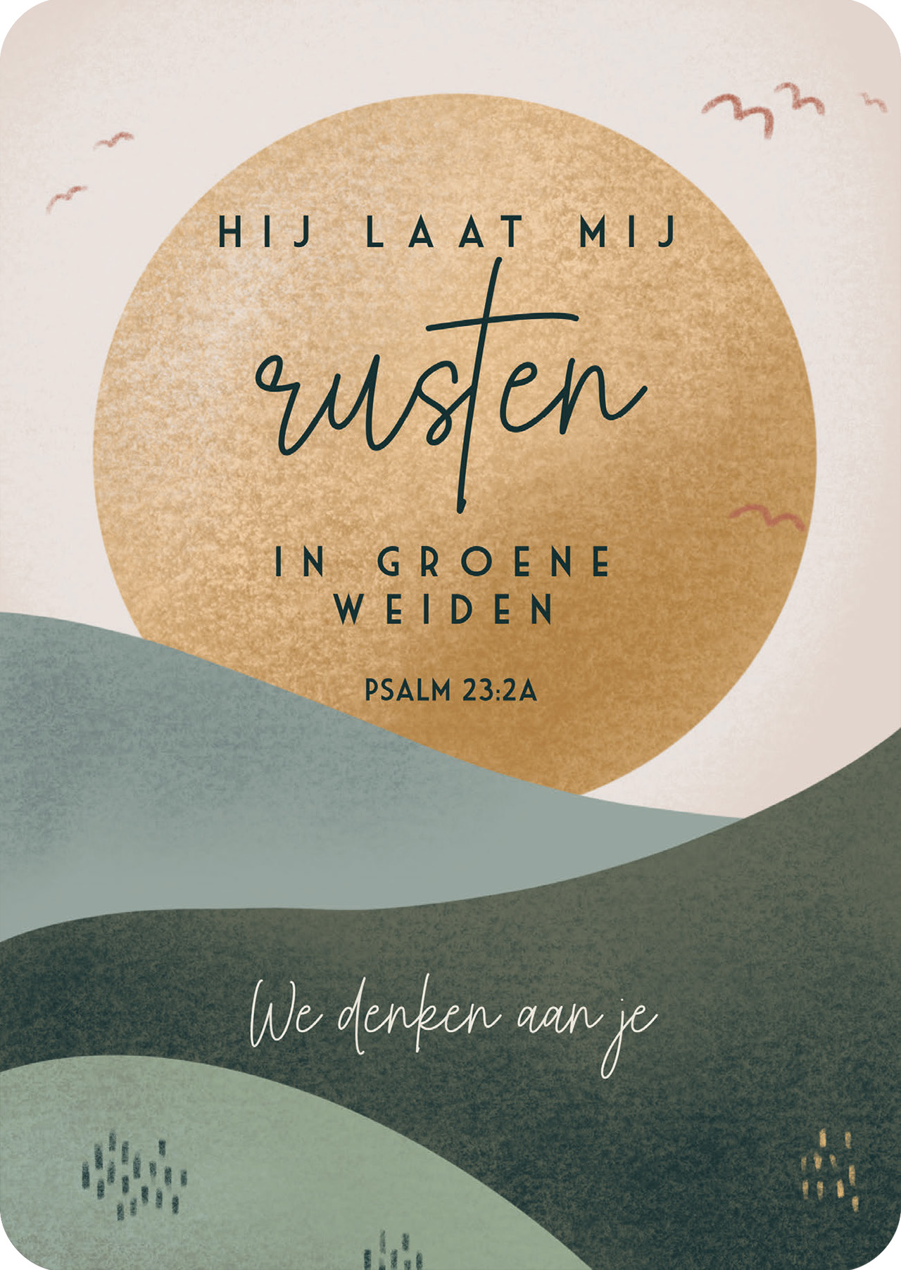 Tekst: ‘Hij laat mij rusten in groene weiden -Psalm 23:2a – We denken aan je’