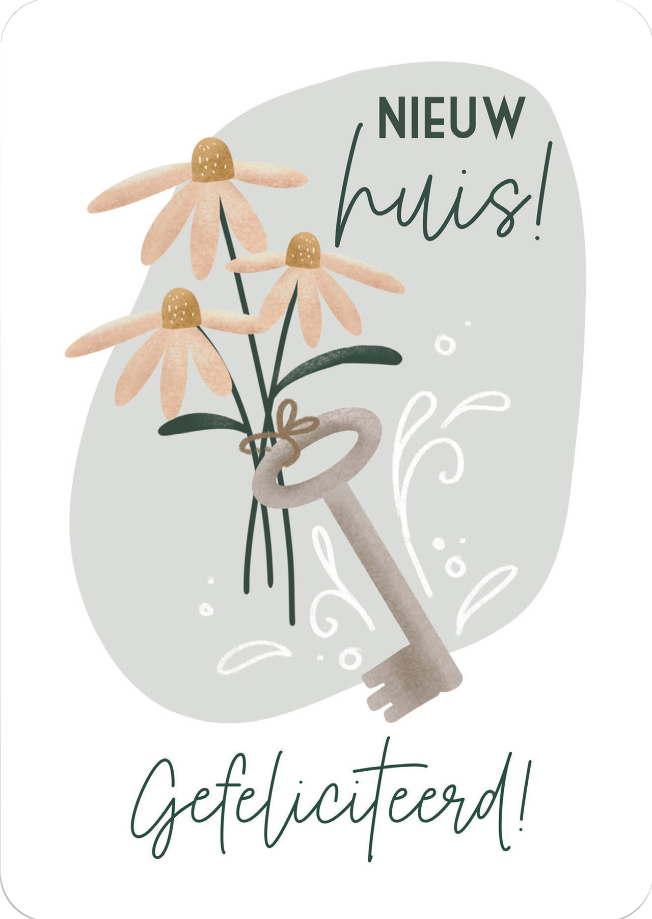 Tekst: ‘Nieuw huis. Gefeliciteerd!’