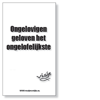 kaart Visje ‘Ongelovigen geloven het ongelofelijkste’ Uitdeelkaarten met visje teksten. Deze kaarten hebben een niet-beschrijfbare achterkant.