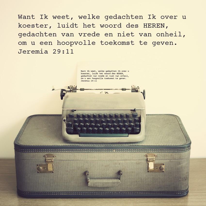 Want Ik weet, welke gedachten Ik over u koester, luidt het woord des HEREN, gedachten van vrede en niet van onheil, om u een hoopvolle toekomst te geven.