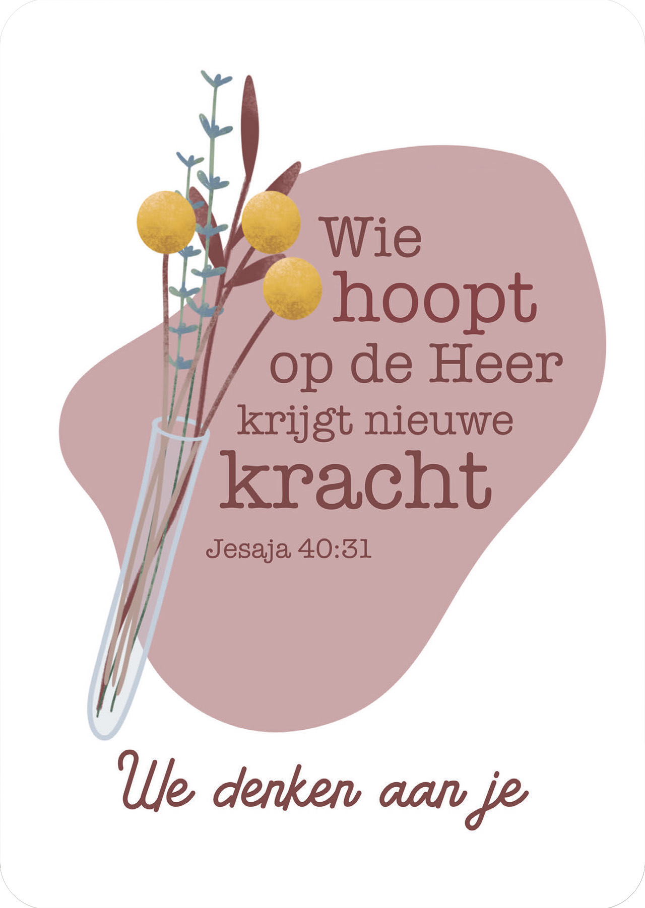 Tekst: “Wie hoopt op de Heer krijgt nieuwe kracht -Jesaja 40:31 – We denken aan je”