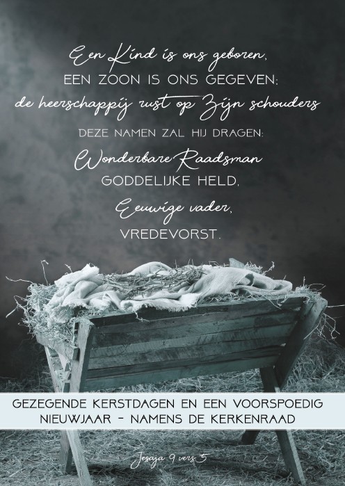 Kerstkaart ‘Een Kind is ons geboren – kerkenraad’