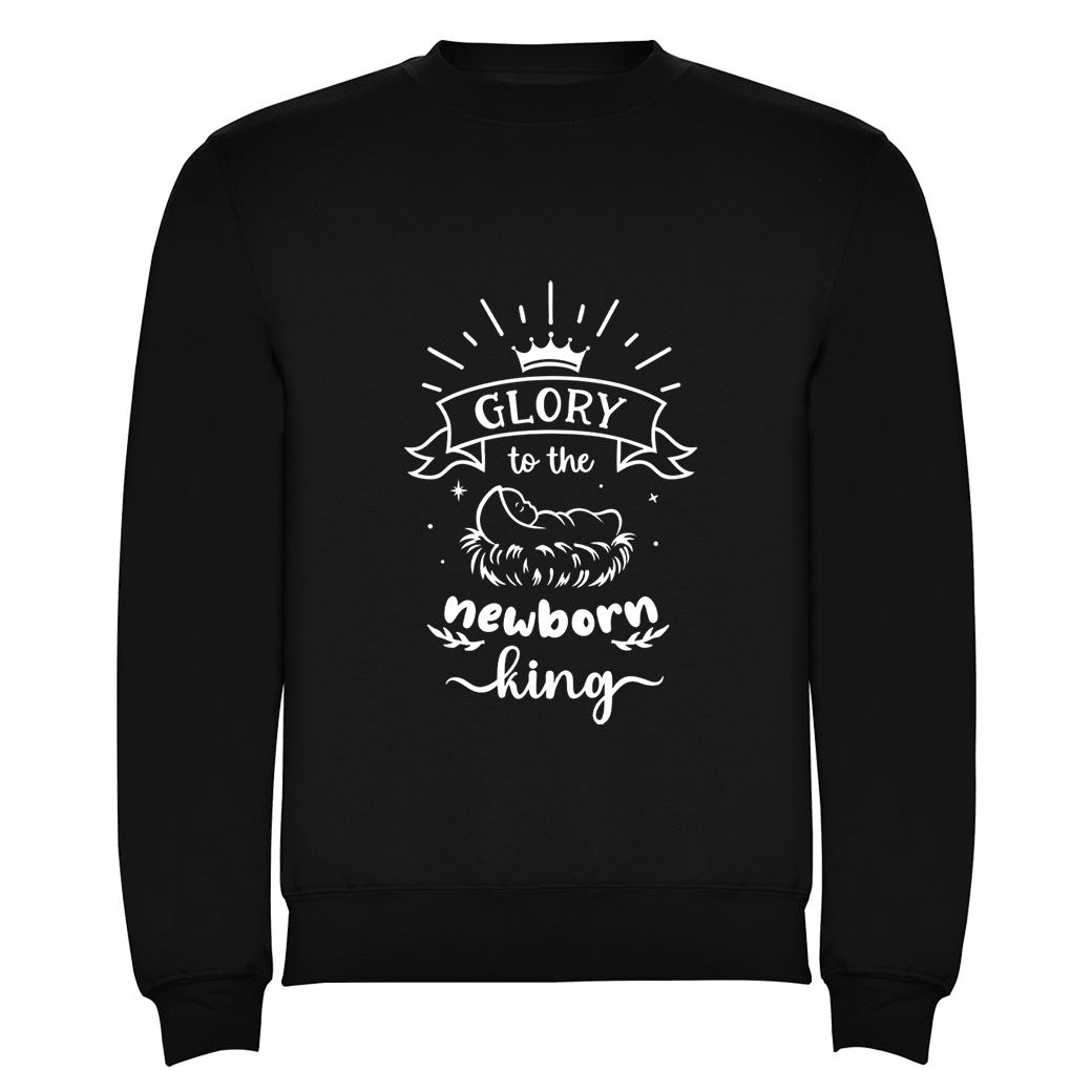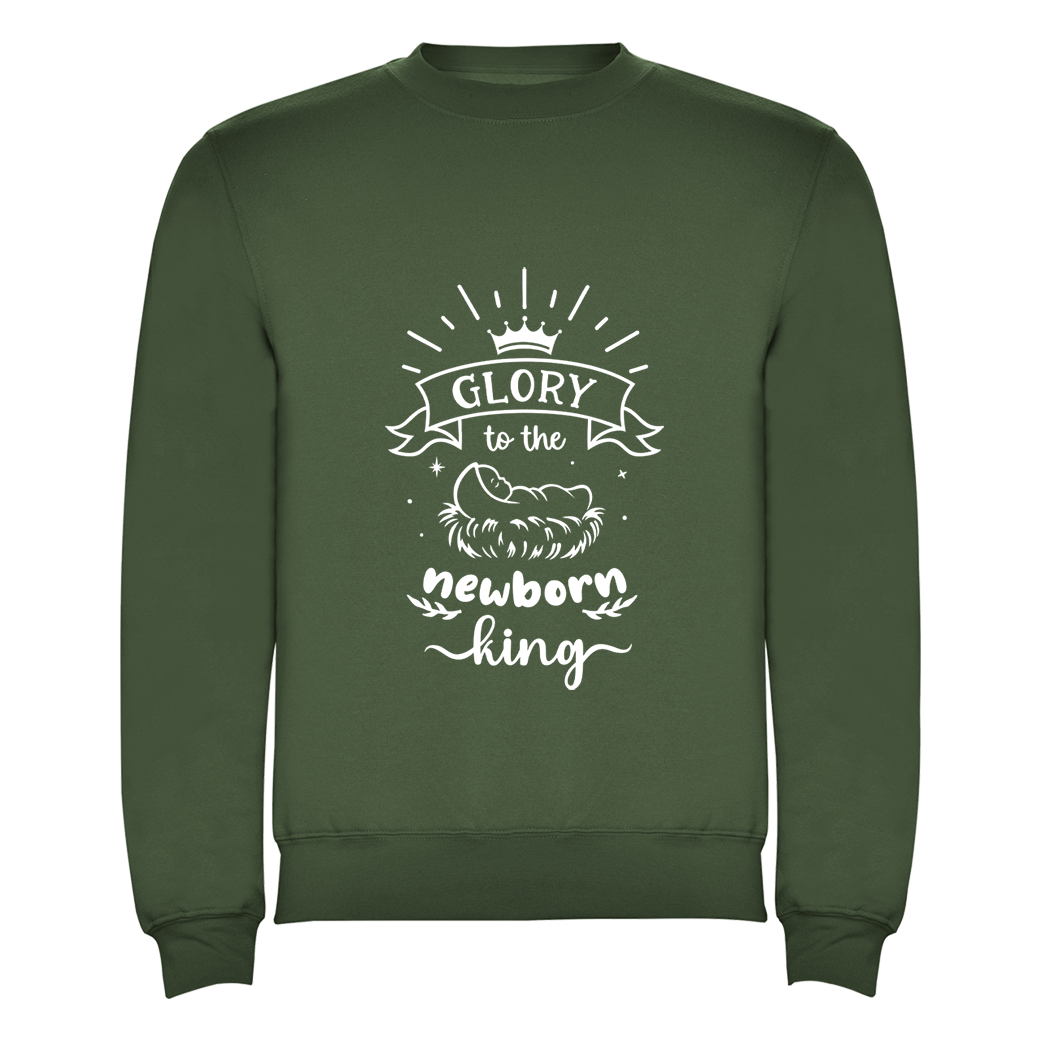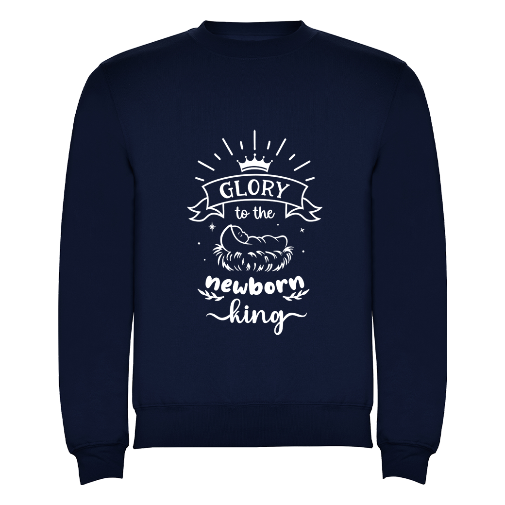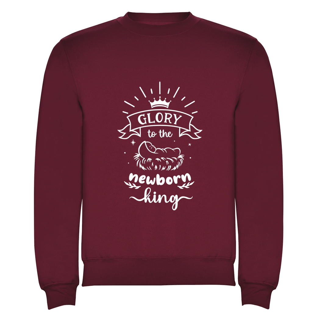 Op de voorzijde prijkt een grote, mooie print met de tekst “Glory to the newborn King”, geïnspireerd op het klassieke kerstlied.
