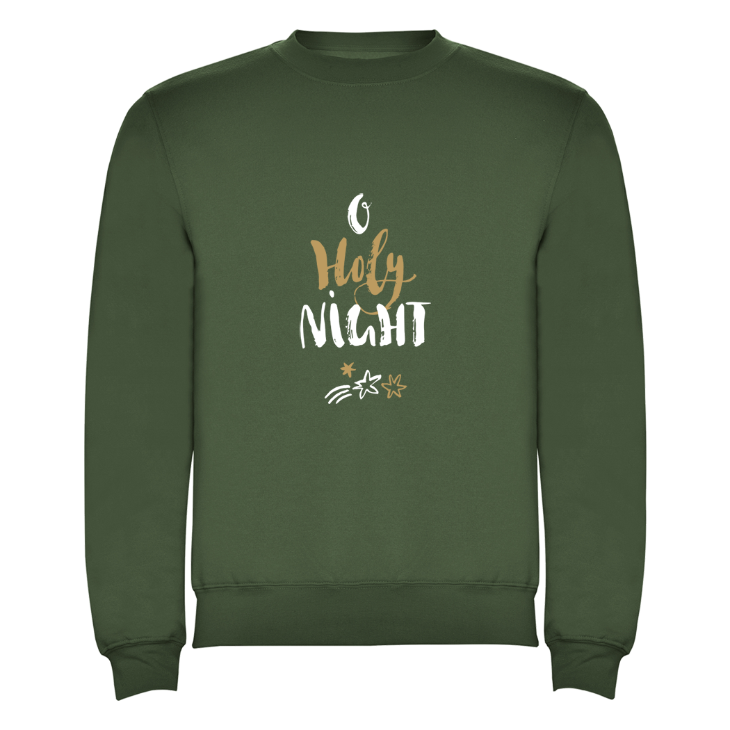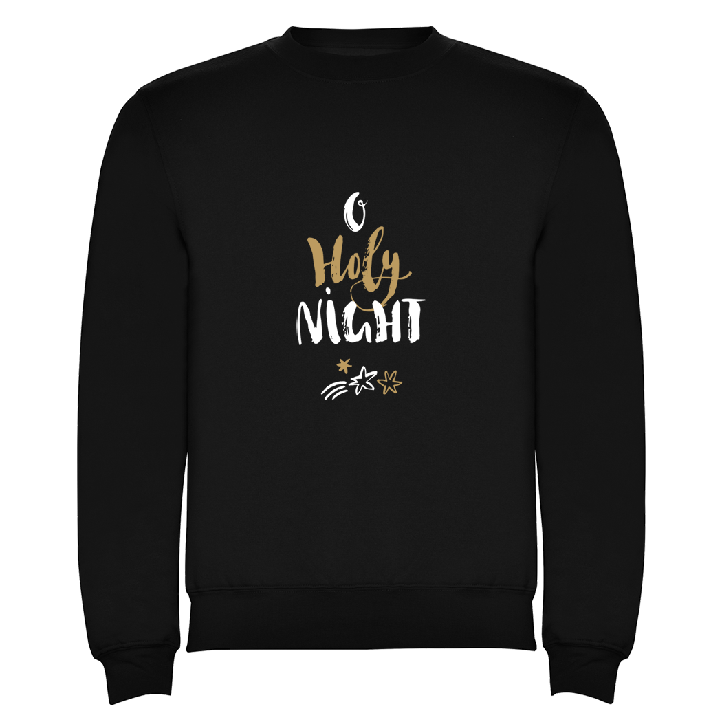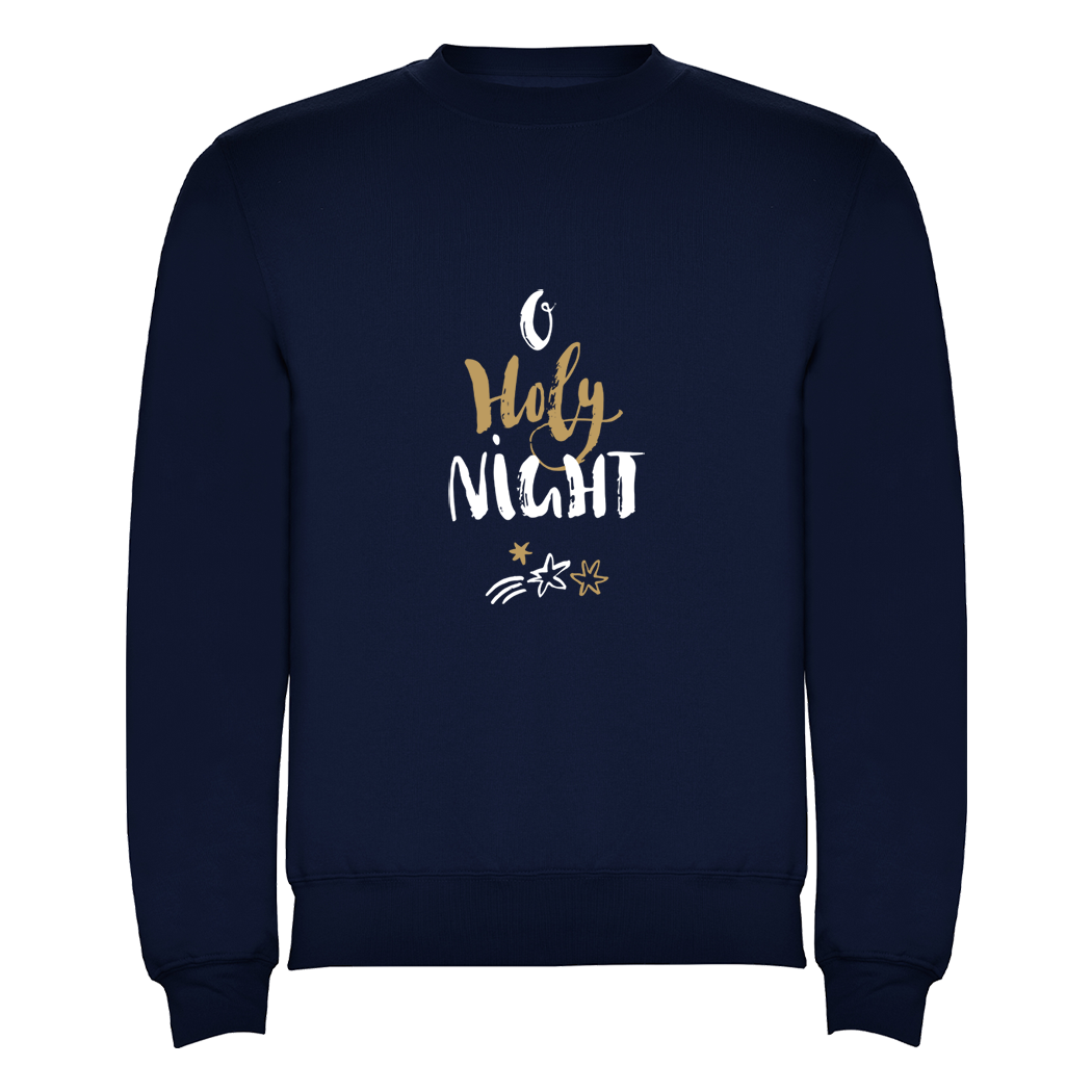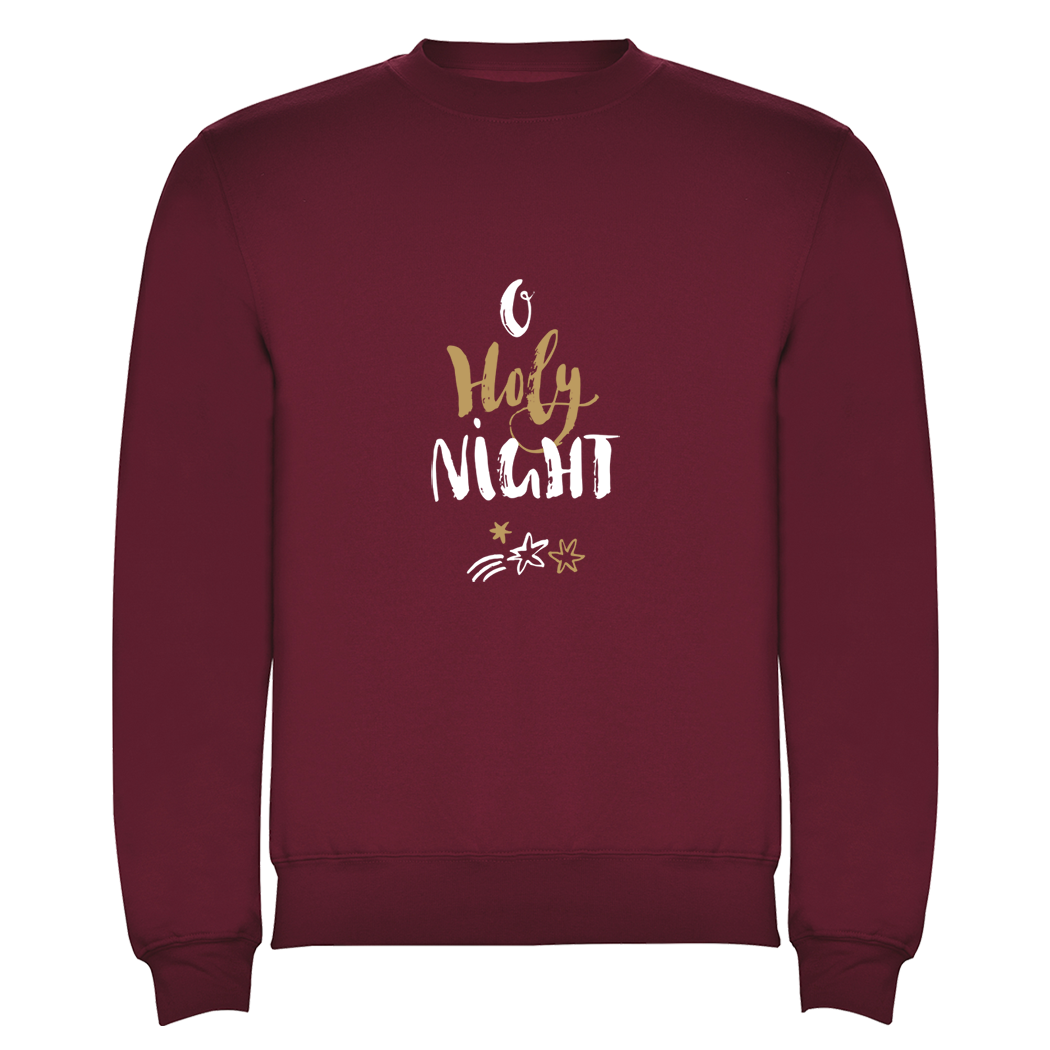 De trui heeft een grote, prachtige print op de voorzijde met de tekst “O Holy Night” en drie sterren, geïnspireerd op het geliefde kerstlied.