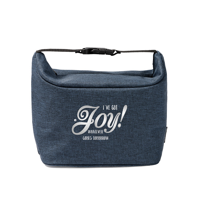 Dit koeltasje heeft een compact formaat voor dagelijks gebruik of onderweg. Het is voorzien van een stevige rits en gespsluiting. De tas is bedrukt met de tekst ‘I’ve got joy! Whatever comes tomorrow’ uit het gelijknamige opwekkingslied.