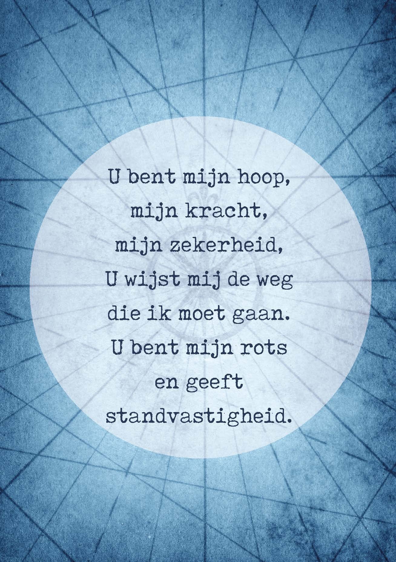 Christelijke dubbele kaart van ca 11×16 cm met een fragment van een liedtekst uit de Opwekking bundel. De kaart kan aan de blanco binnenzijde beschreven en geadresseerd worden. Wordt geleverd met Envelop.