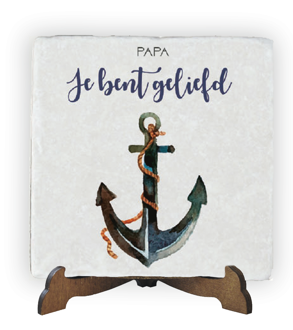 Tegel, 10 x 10 cm, inclusief houdertje om de steen neer te zetten op een dierbaar plekje in huis.