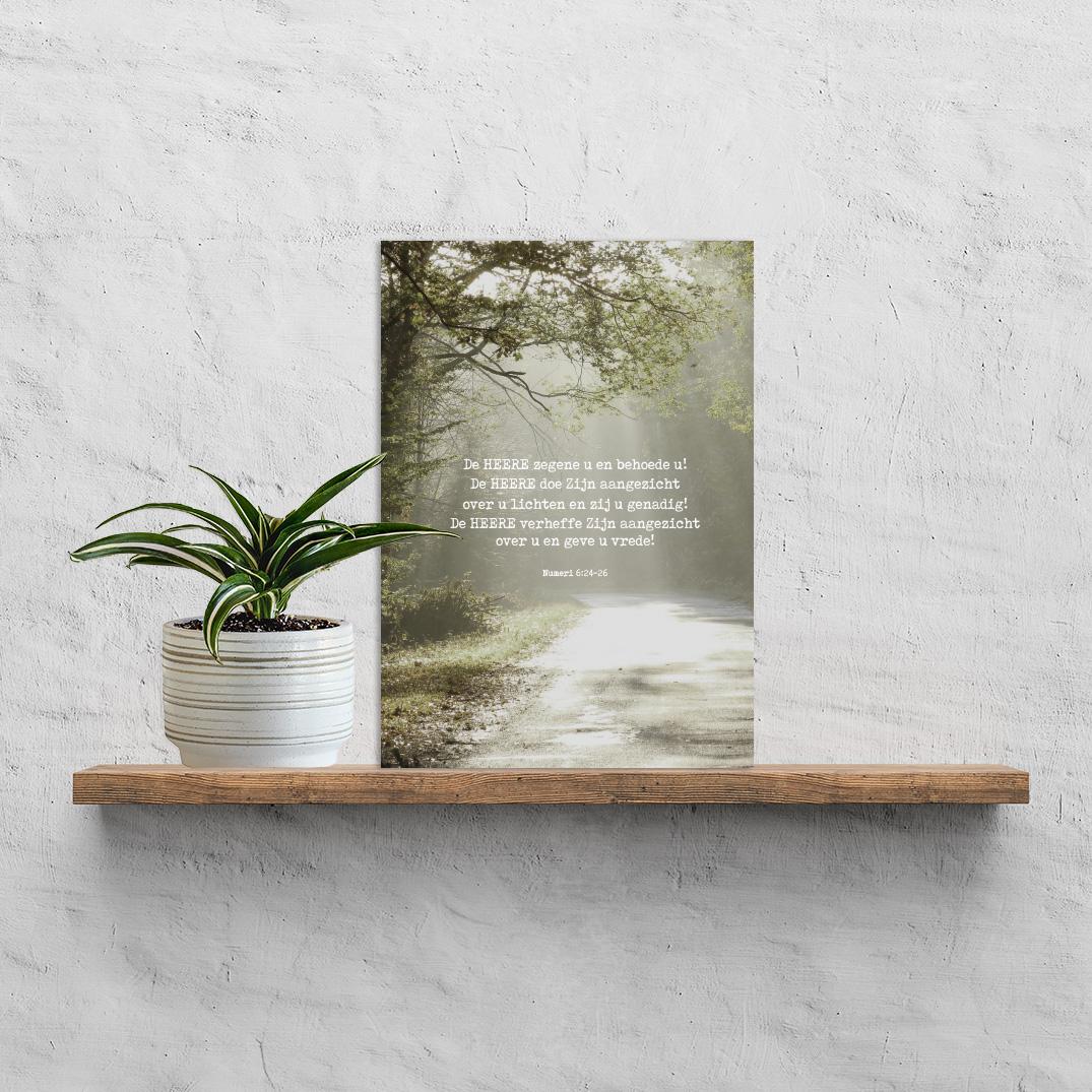 Prachtig duurzaam bord van plexiglas met de tekst: ‘De HEERE zegene u en behoede u! De HEERE doe Zijn aangezicht over u lichten en zij u genadig! De HEERE verheffe Zijn aangezicht over u en geve u vrede! Numeri 6:24-26 (HSV)’.
