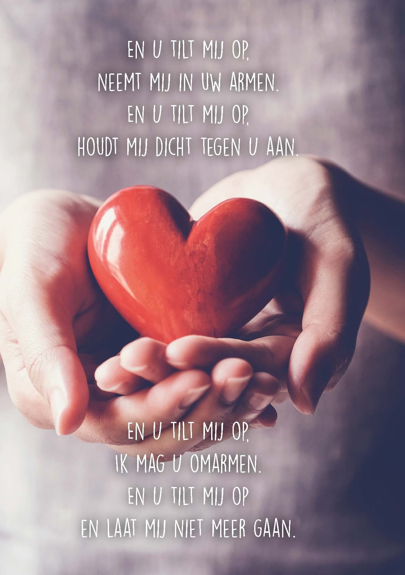 En U tilt mij op, ik mag U omarmen. En U tilt mij op en laat mij nooit meer gaan.”