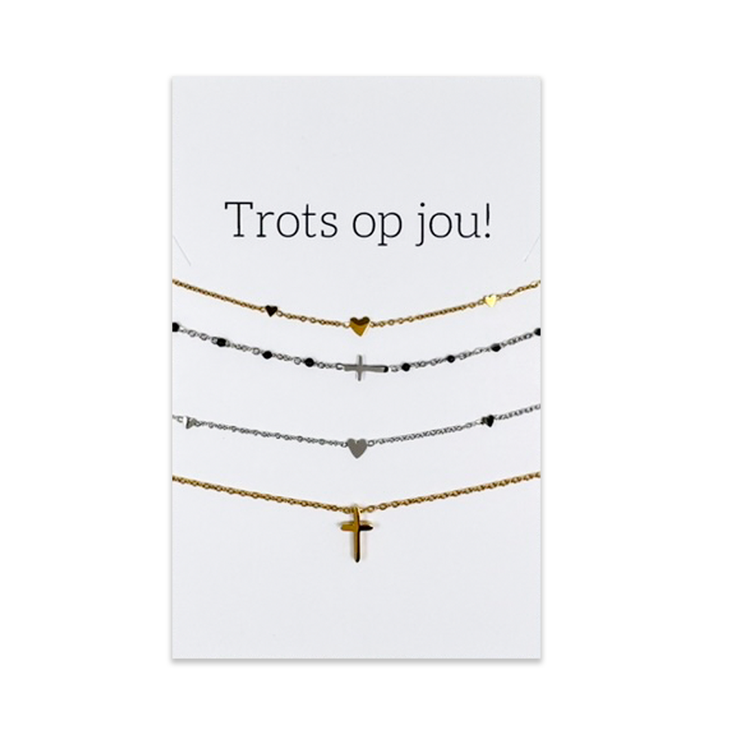 Deze set bevat een prachtige kaart met een armband of ketting. Kies uit 8 unieke combinaties of stel je eigen set samen door een losse kaart te combineren met een sieraad naar keuze.