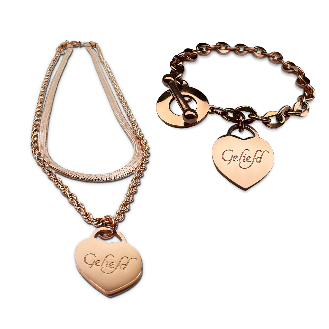 Onze sieraden zijn van stainless steel, waardoor ze niet verkleuren, niet afgeven en geen allergische reacties veroorzaken.