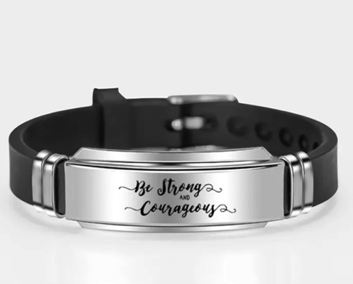 Stoere silliconenarmband met de inspirerende tekst: ‘Be strong and courageous’. Deze armband inspireert je sterk en dapper te zijn, net zoals de Heer in Jozua 1:9 tegen Jozua zei.
