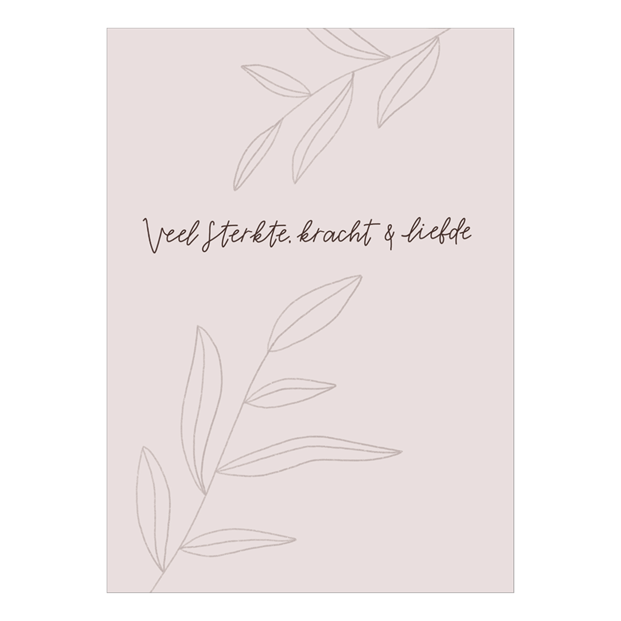 Een enkele kaart op dik papier met de tekst ‘Veel sterkte’.