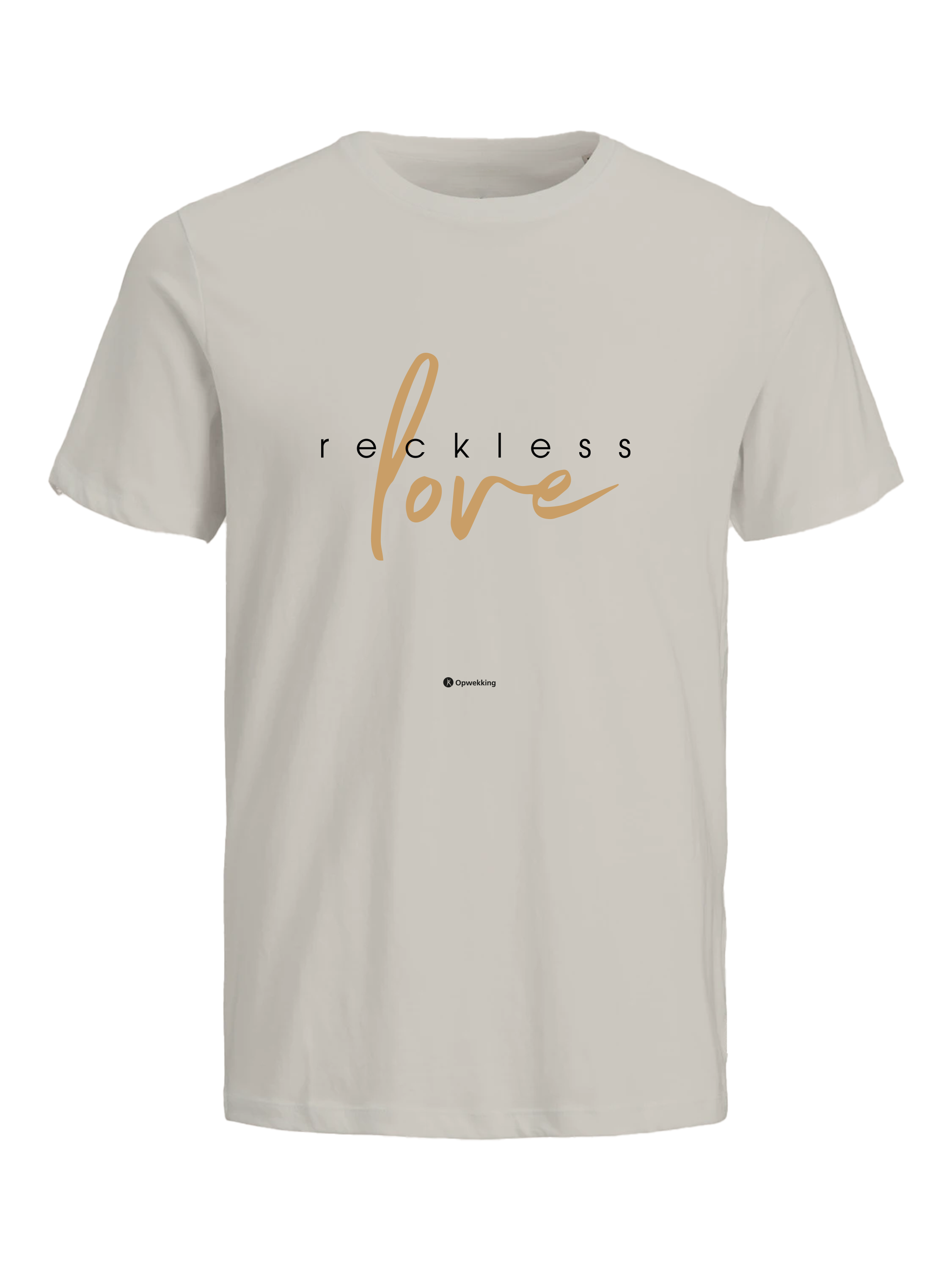 Prachtige t-shirt met de opdruk ”Reckless love”.
