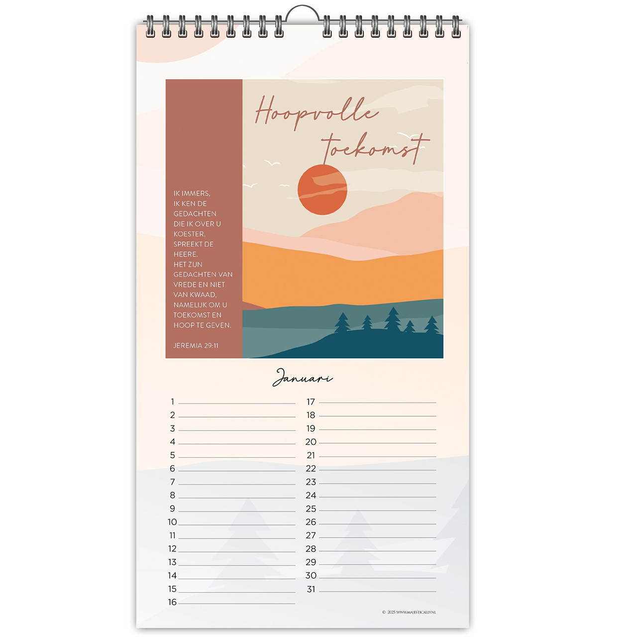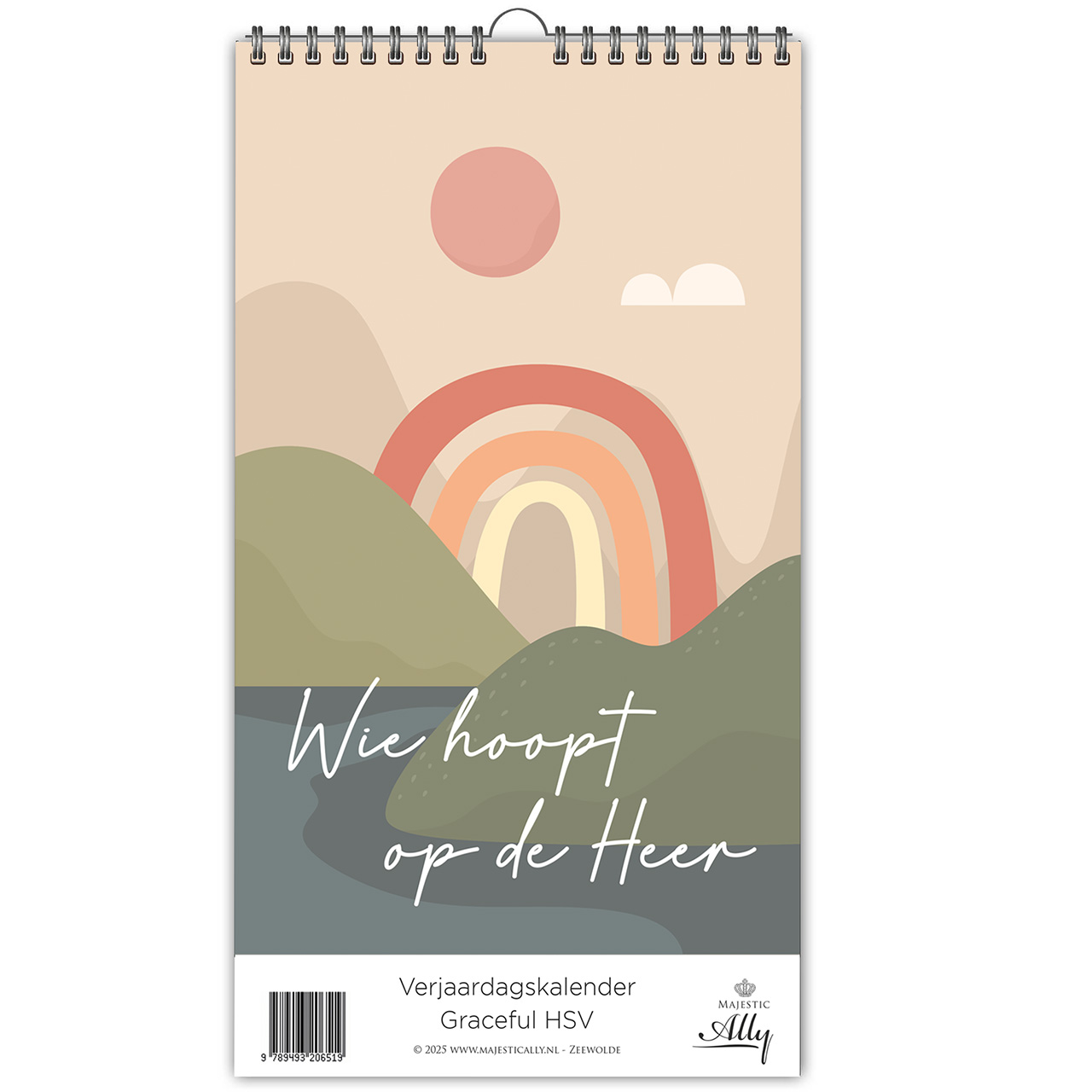 Ontdek de unieke verjaardagskalender ‘Graceful’. Deze kalender combineert prachtige illustraties in zachte kleuren met zorgvuldig geselecteerde Bijbelteksten uit de Herziene Statenvertaling (HSV).