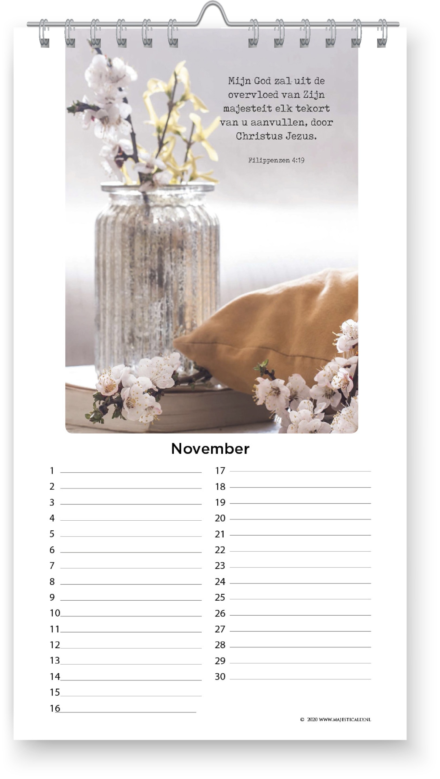 Prachtige verjaardagskalender met landelijke afbeeldingen en Bijbelteksten.