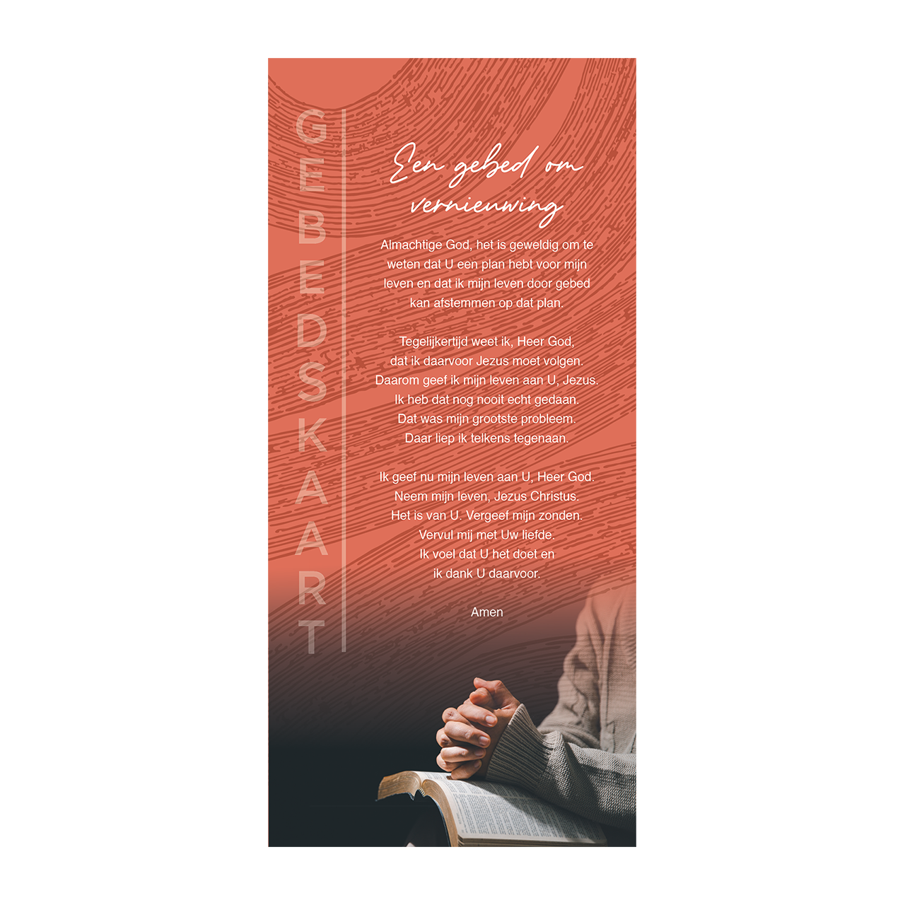 Set van 12 verschillende gebedskaarten met onder andere de volgende titels: Bij het overlijden, Volharding, Een gebed van hoop, De Heer is mijn Herder, St. Patrick en Naderend einde.