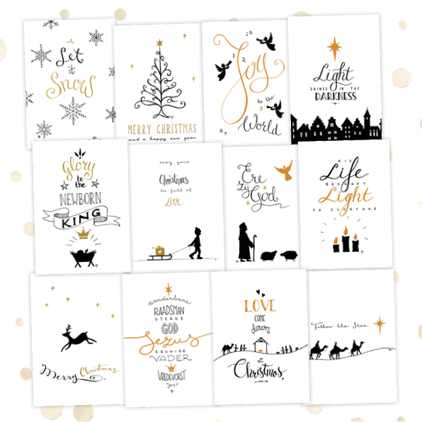 Voordeelpakje kerstkaarten ‘Golden Blessings 3’ – 12 stuks