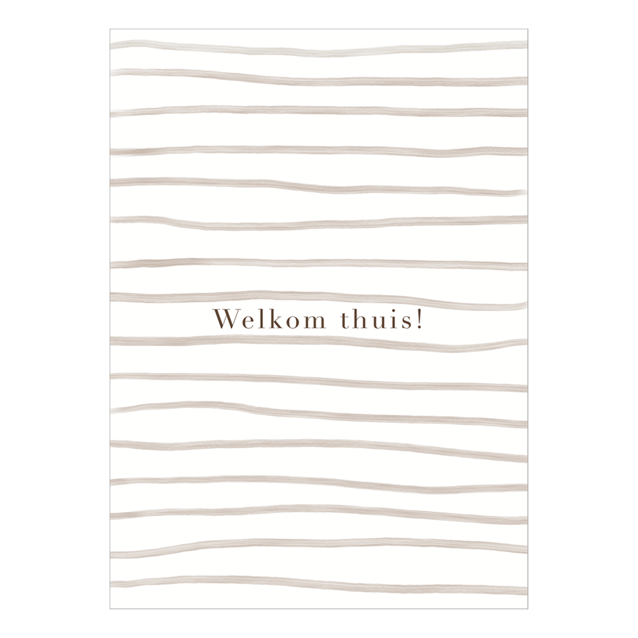 Een enkele kaart op dik papier met de tekst ‘Welkom thuis!’