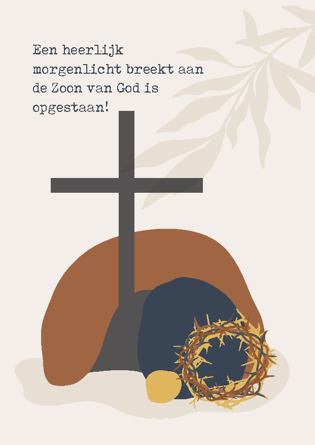 Tekst: “Een heerlijk morgenlicht breekt aan de Zoon van God is opgestaan!”