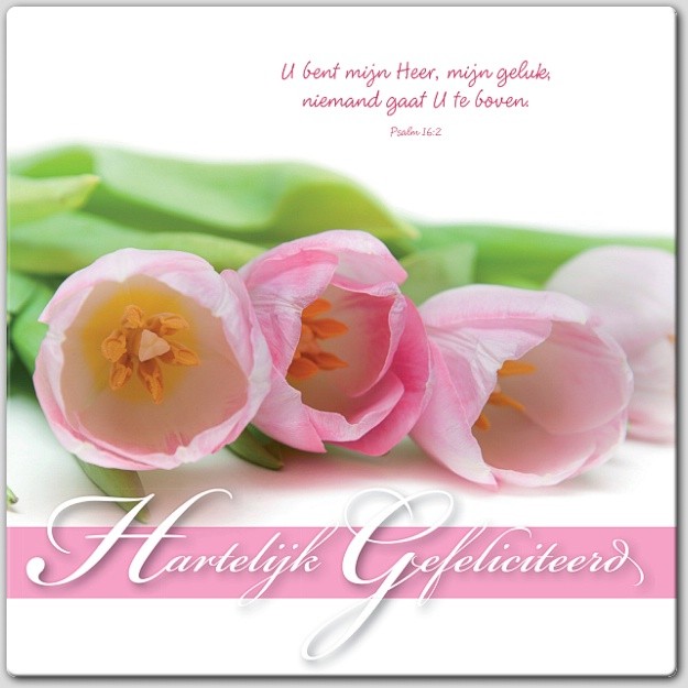 Wenskaart ‘Hartelijk gefeliciteerd’ Prachtige wenskaarten met afbeeldingen uit de natuur en bijpassende Bijbelteksten. Verpakt in folie met envelop.