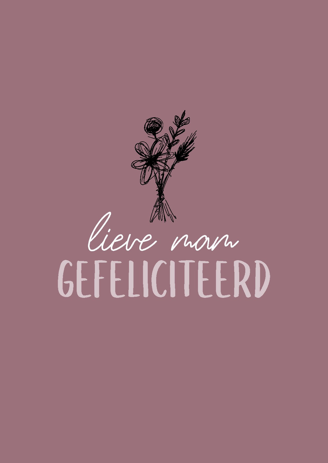 Christelijke dubbele kaart van ca 11×16 cm met de tekst: ‘Lieve mam, gefeliciteerd‘