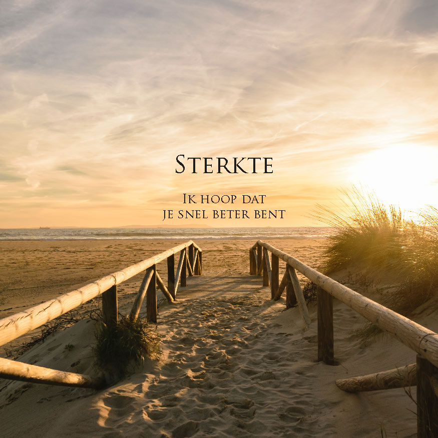 Deze vierkante, dubbele wenskaart (ca. 15 x 15 cm) is mooi om te sturen als bemoediging naar iemand in een periode van ziekte. Wordt geleverd met envelop.