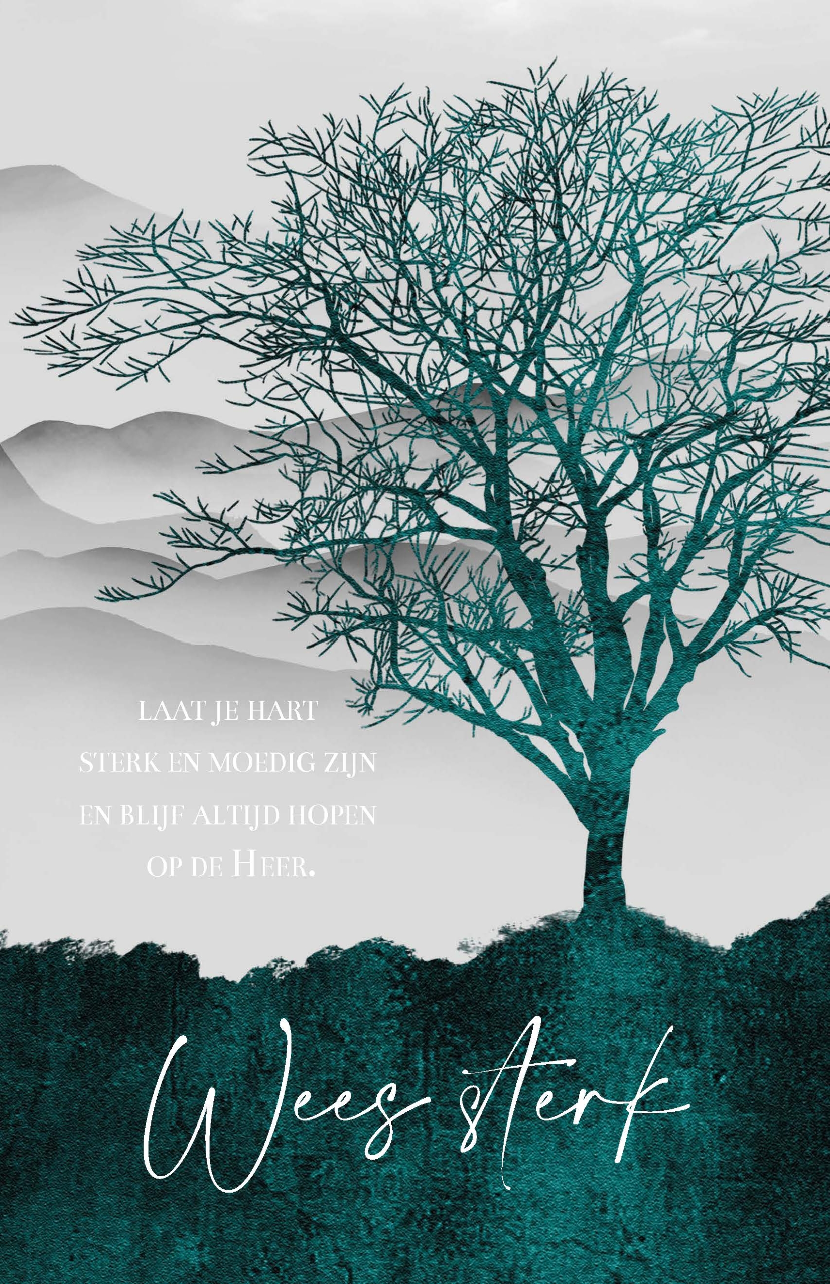 Tekst: ‘Laat je hart sterk en moedig zijn en blijf altijd hopen op de Heer. Wees sterk’
